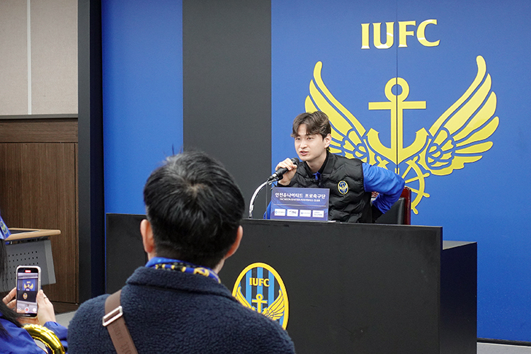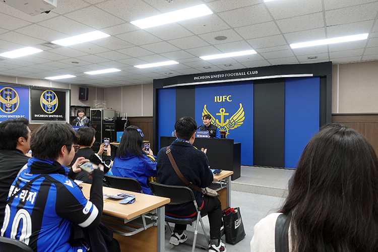 기자회견장에서 간단하게 기자회견 느낌으로 선수와 질의응답을했는데