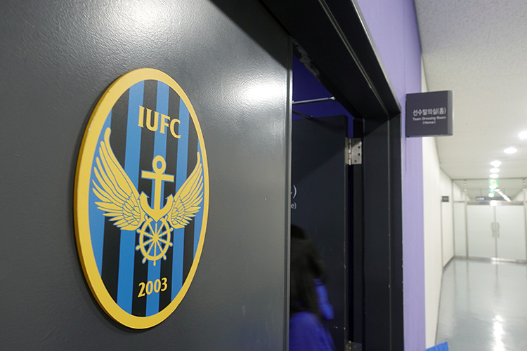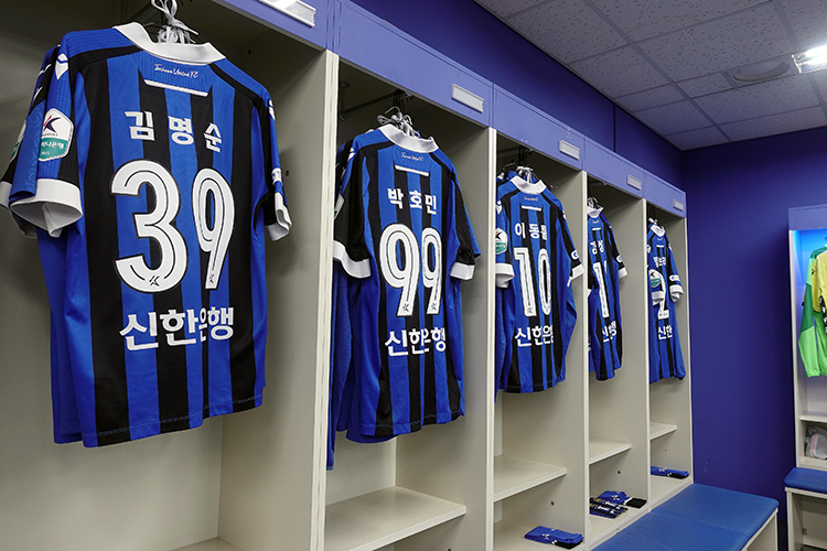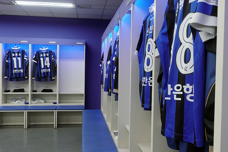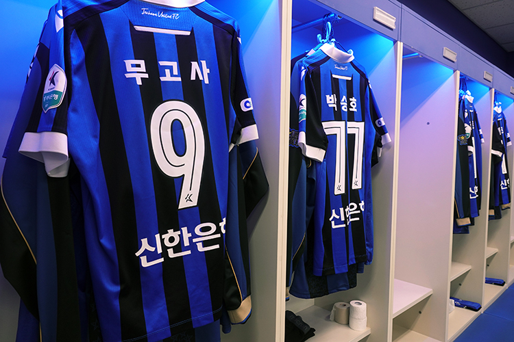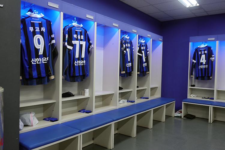 무고사의 라커룸 앞 신발들