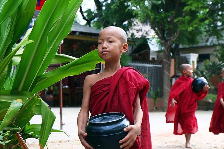 각자의 양동이같은걸 가지고다니며 맨발로 탁발을 하는데