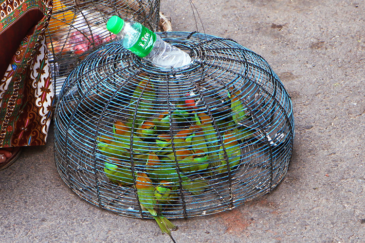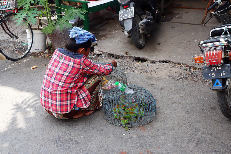 새를 파는 아주머니가 눈길을 끌었다
