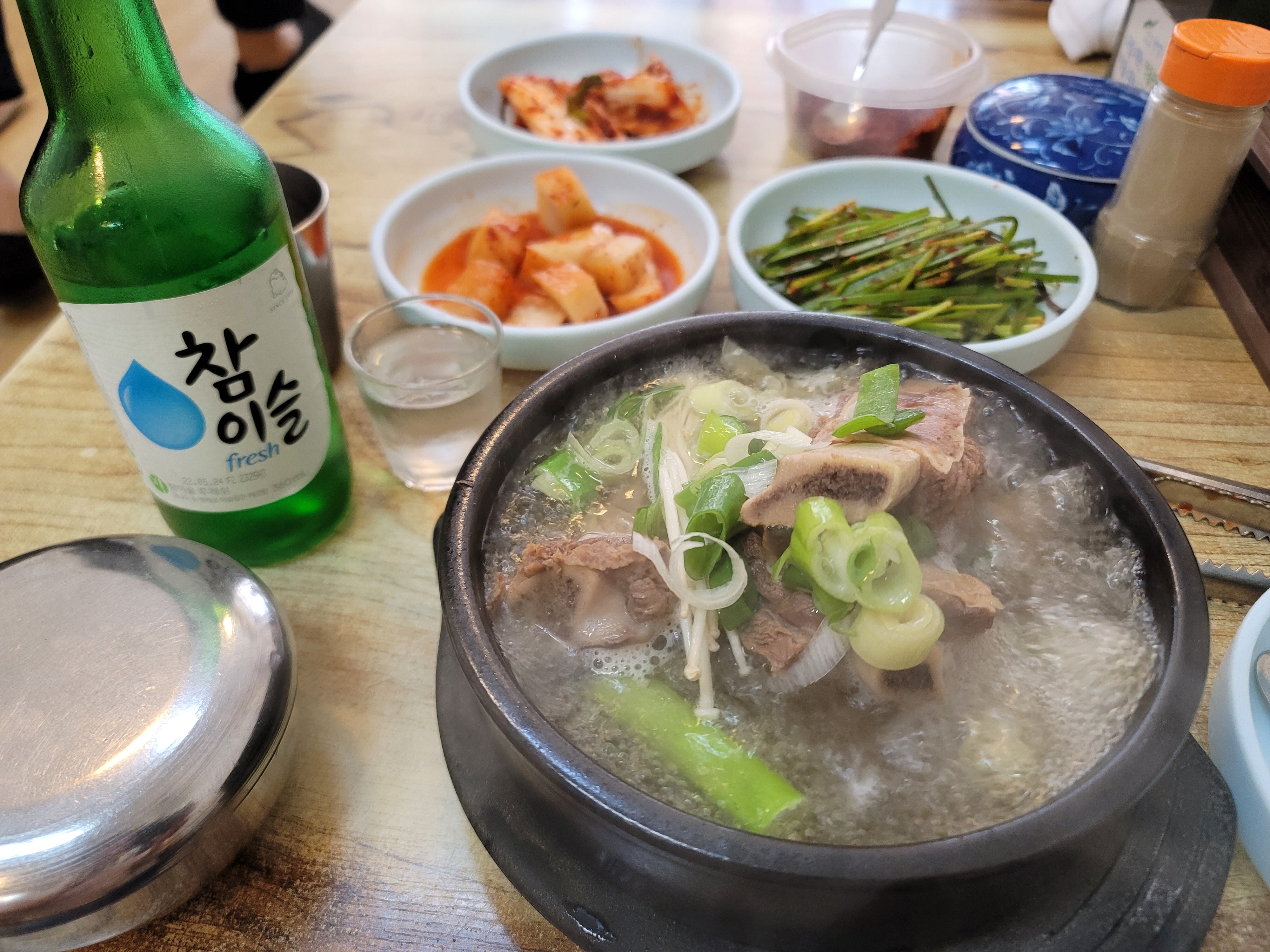 잠시 기다리면서 소주한잔으로 입가심을 하니 탕이나왔다