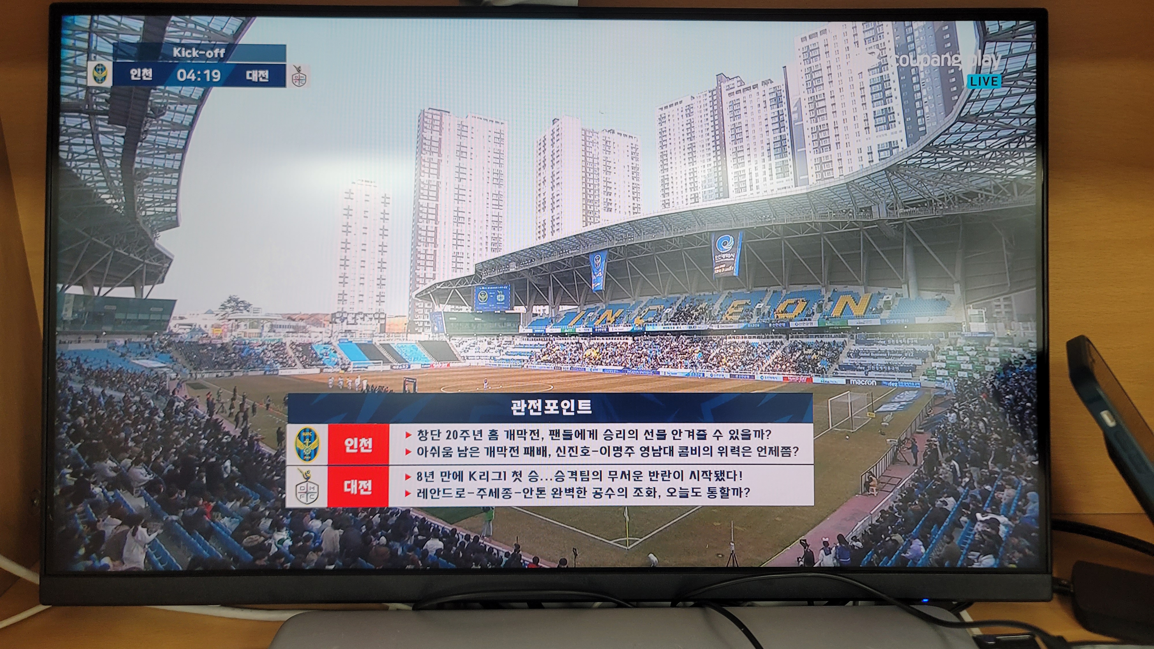 전체적인 인천의 공격력이나 짜임새는 지난시즌보다 상승해서 참 좋다
